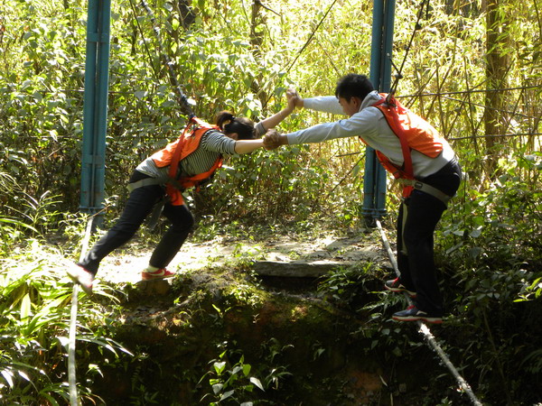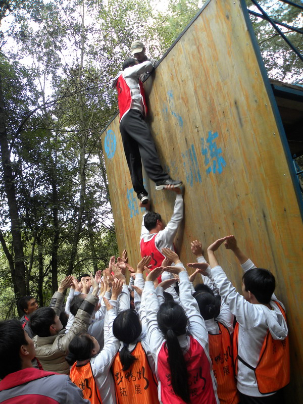 •  20121134日,昆明野鴨湖拓展訓(xùn)練基地那里留下了我們成長的足跡。在各項訓(xùn)練活動中,歌聲與微笑同在,汗水與淚水交織,演繹著敢于擋當(dāng)、不言放棄,奮力拼搏、突破自我,彼此信任、緊密團結(jié)的真實故事,深深打動了每一個人。最特別的還是徒手翻越4.5高的團隊墻,因為那里不僅僅有大家奮力向上攀爬劃下的印跡,更多的攀爬過程中緊密配合的汗水及動人的淚水。大家真正體會到了“責(zé)任”的份量與團結(jié)的力量。我們永遠都是一個團隊!